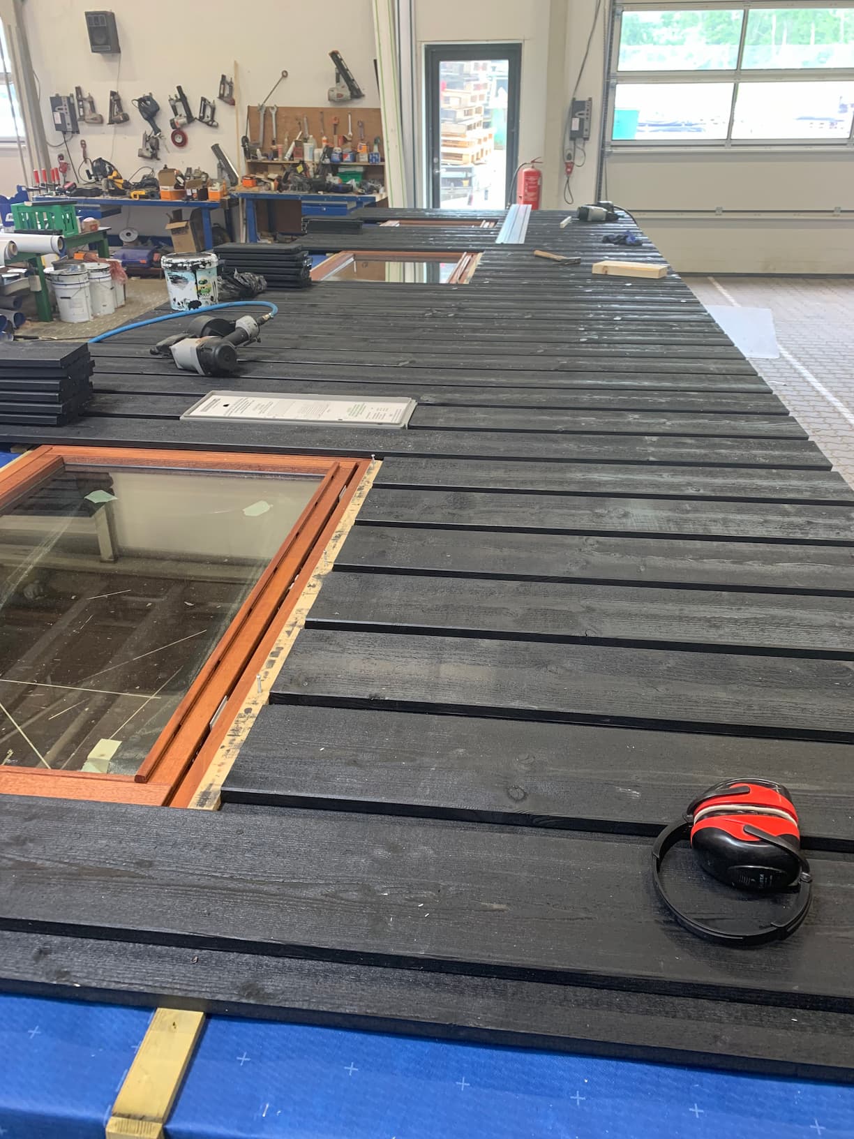 Alle husets udvendige dele fremstilles og samles indendørs. Her er temperatur, luftfugtighed med videre styret helt nøjagtigt. Det giver præcision og kvalitet i håndværket, som er umulig at opnå på en udendørs byggeplads.