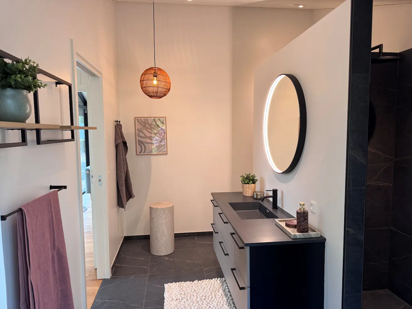 Henne er kendetegnet ved en moderne, stram arkitektur uden udhæng. Den byder på fantastiske vinduespartier, skydedør i køkken/alrum og meget mere.