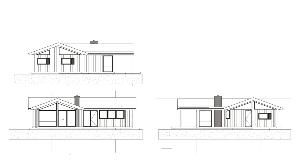 Flere af modellerne har en elegant køkkenkarnap, der åbner sig mod naturen og lader hjemmets aktiviteter følge årstidernes skift. De store glaspartier trækker himmel, have og udsigt helt ind i rummene og giver en følelse af lethed og nærvær. Resultatet er et sommerhus med både åbenhed og afskærmning, hvor sol og læ fordeler sig naturligt omkring huset. Alt i alt et udtryk for arkitektonisk klarhed – enkelt, smukt og gennemtænkt.