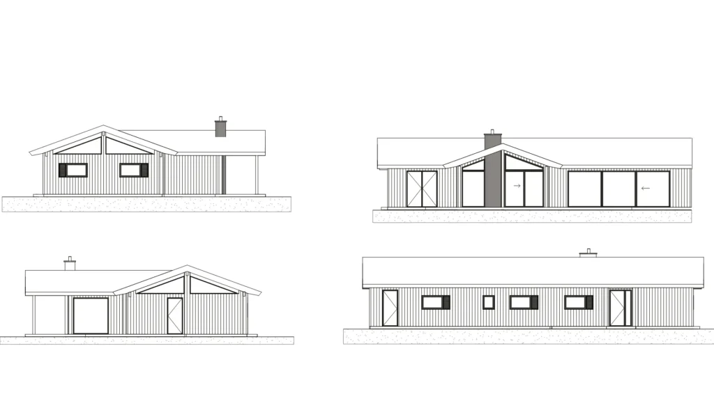 Flere af modellerne har en elegant køkkenkarnap, der åbner sig mod naturen og lader hjemmets aktiviteter følge årstidernes skift. De store glaspartier trækker himmel, have og udsigt helt ind i rummene og giver en følelse af lethed og nærvær. Resultatet er et sommerhus med både åbenhed og afskærmning, hvor sol og læ fordeler sig naturligt omkring huset. Alt i alt et udtryk for arkitektonisk klarhed – enkelt, smukt og gennemtænkt.