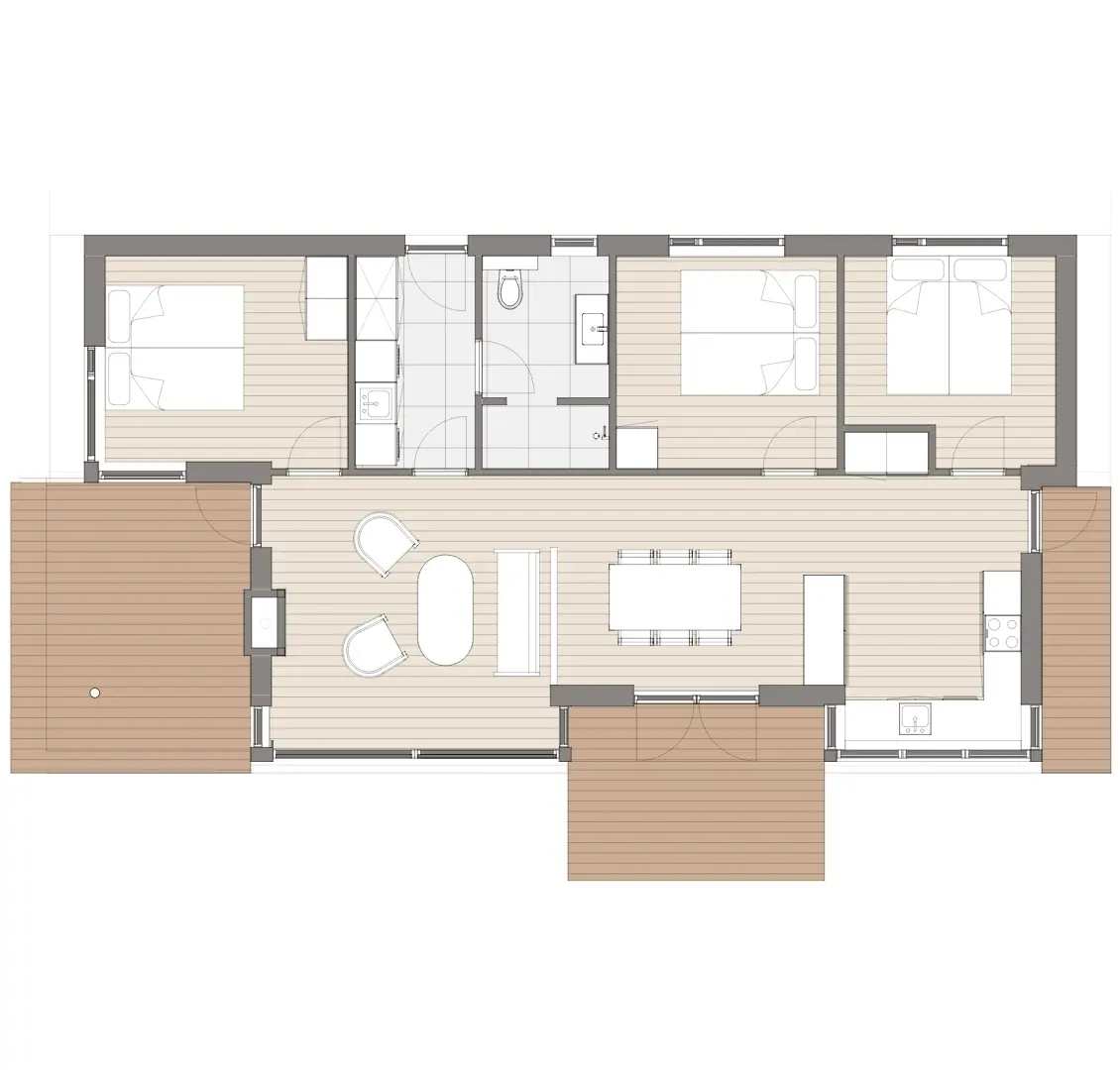 De rene linjer og det gennemarbejdede udtryk skaber en arkitektur, der står på naturens præmisser – diskret, funktionel og smukt afbalanceret.